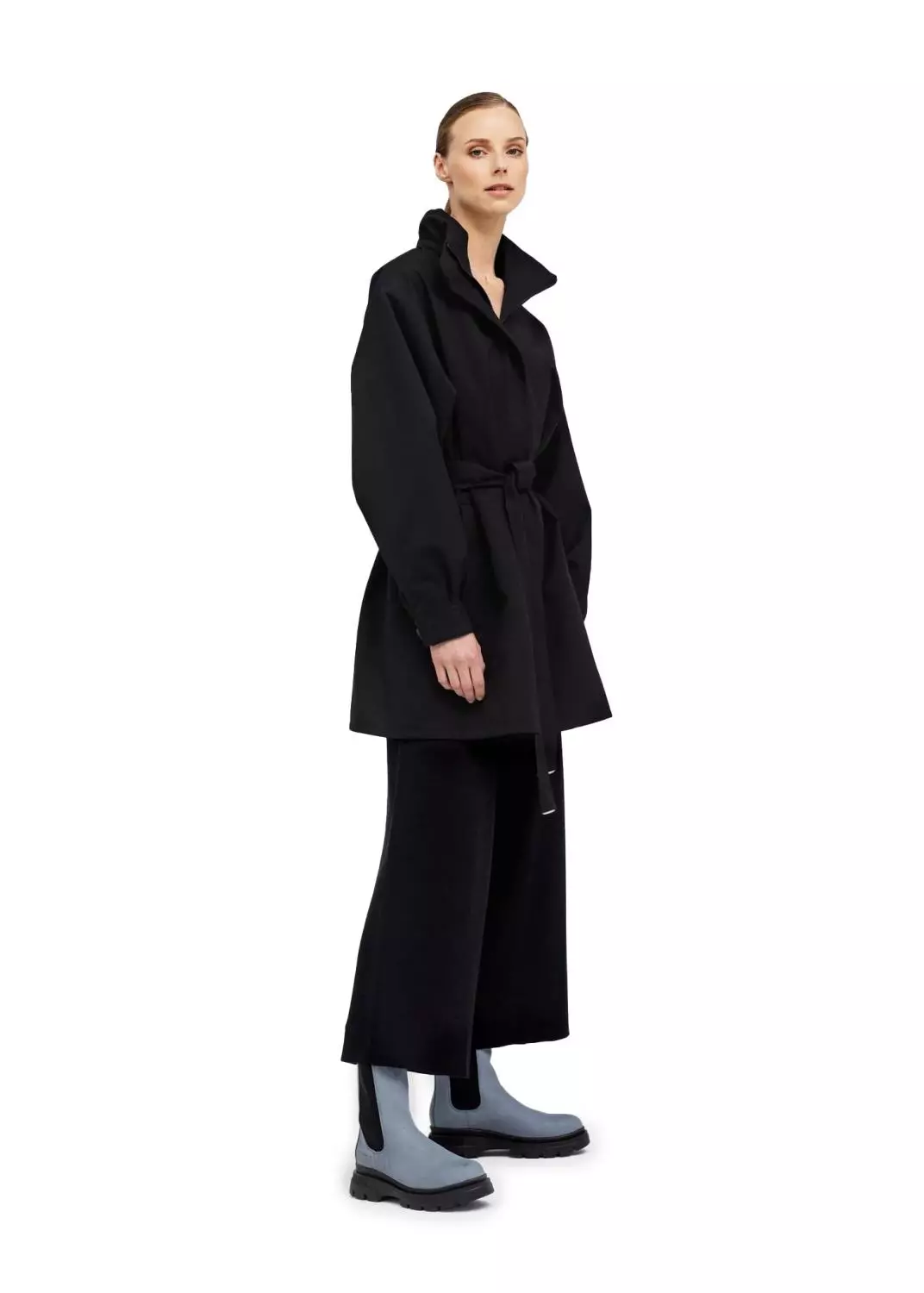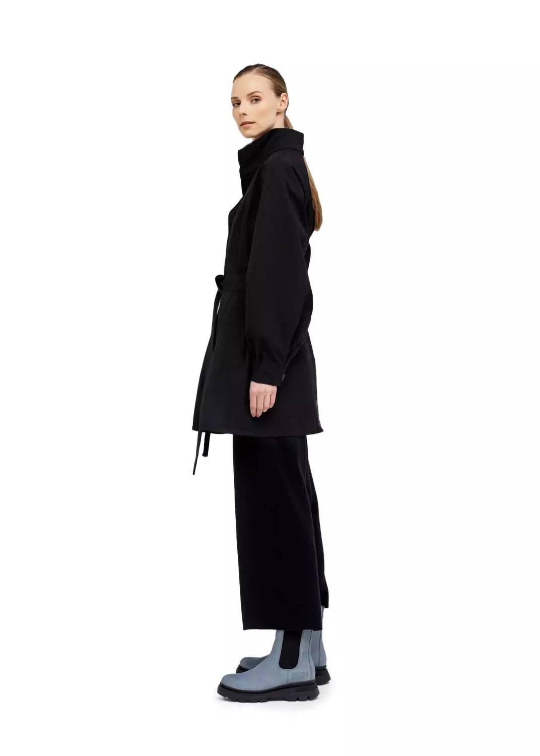 Rossby i fargen New Black, er en vanntett regnjakke som lar deg fremheve silhuetten din i all slags vær. Kåpen er laget i resirkulerte tekstiler med ballongformede ermer og belte i livet, for et ekstra feminint preg. Jakken har 20.000 i vannsøyle.